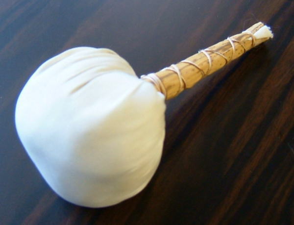 打ち粉というものは刀身の地鉄に染み込んだ古い油を綺麗に除去するための砥石の粉です。