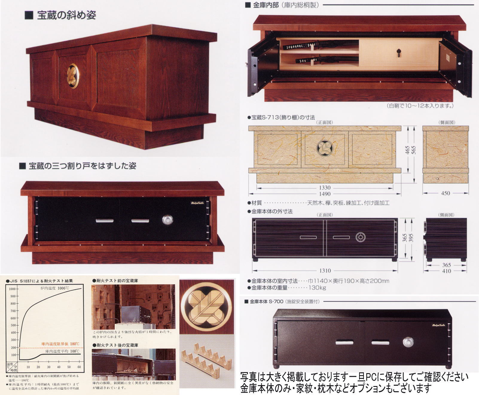 ●キャビネットなしの金庫本体(S-700)のみのご注文も可能38万円〜 ●家紋別注:35,000円